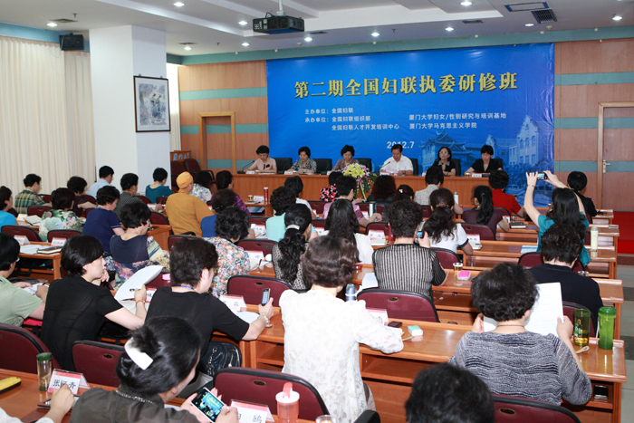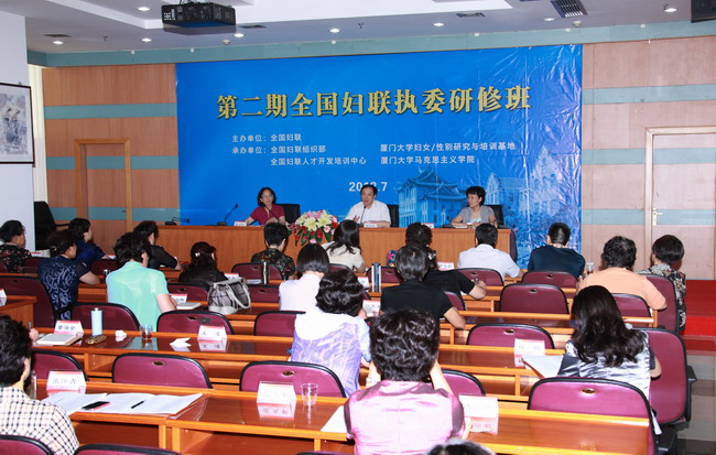 为加强全国妇联执委能力建设,充分发挥执委履行职能作用,推动妇女事业发展,7月9-13日,全国妇联第二期执委研修班在我校举行。全国妇联党组副书记、副主席、书记处书记陈秀榕,我校党委书记杨振斌、校长朱崇实,福建省妇联主席刘群英,我校党委副书记、妇女\性别研究与培训基地主任陈力文,全国妇联组织部副部长冯曼东等分别出席开班和结业式。
