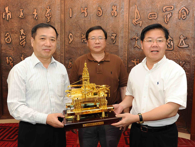 15日,杨振斌、朱崇实访问中国海洋石油总公司,商谈开展战略合作事宜,受到中国海油总经理杨华、副总经理吕波、纪检组组长张健伟等领导和专家的热烈欢迎和热情接待。杨华指出,双方开展合作是优势互补、强强联合,有很好的机会、有很大的空间。双方明确在近期内抓紧进行合作内容、合作项目的对接,尽快签订战略合作协议,尽快取得双赢的成果。