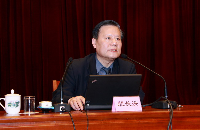 3月28日下午,中国社科院经济研究所所长兼党委书记裴长洪教授做客我校“党校名家讲坛”,就“学习《政府工作报告》与当前经济形势”做报告,与大家分享自己学习《政府工作报告》的感想与体会。校党委副书记陈力文主持报告会。