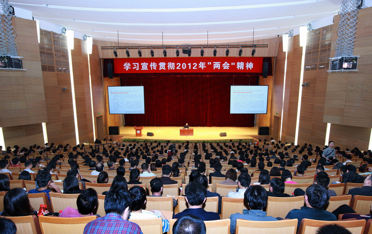 校领导、校长助理、中层以上干部、党支部书记、思想理论课教师、理论报告员、党务秘书、辅导员,民主党派和各团体负责人,部分工会主席和机关干部参加报告会。