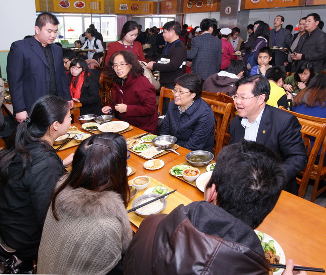 李卫红在校期间,还视察了学校翔安校区建设工地,到校本部丰庭、芙蓉学生宿舍,到湖畔咖啡厅看望学生,参观了校本部校园,并在芙蓉餐厅与同学共进午餐。