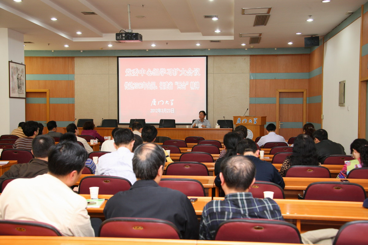 3月23日下午,学校召开党委中心组学习扩大会议,传达学习2012年全国和福建省两会精神。会议由党委副书记陈力文主持。