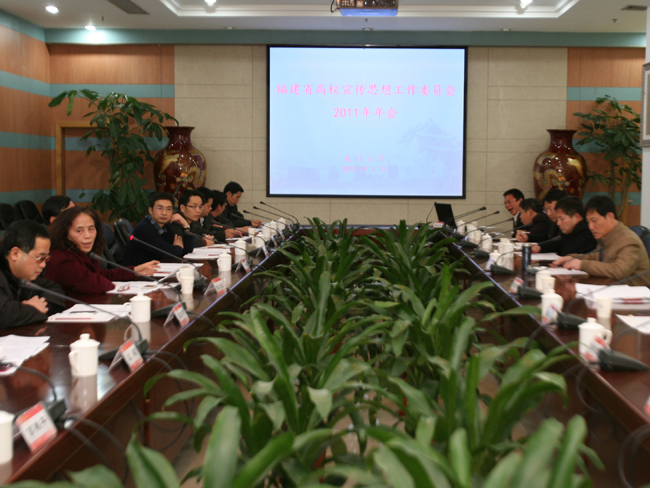 1月5日,福建省高校宣传思想工作委员会2011年会在我校颂恩楼215会议室举行,省教育工委宣传部部长叶杨、我校党委副书记陈力文以及来自全省本科高校的30余位宣传部门负责人参加了会议。