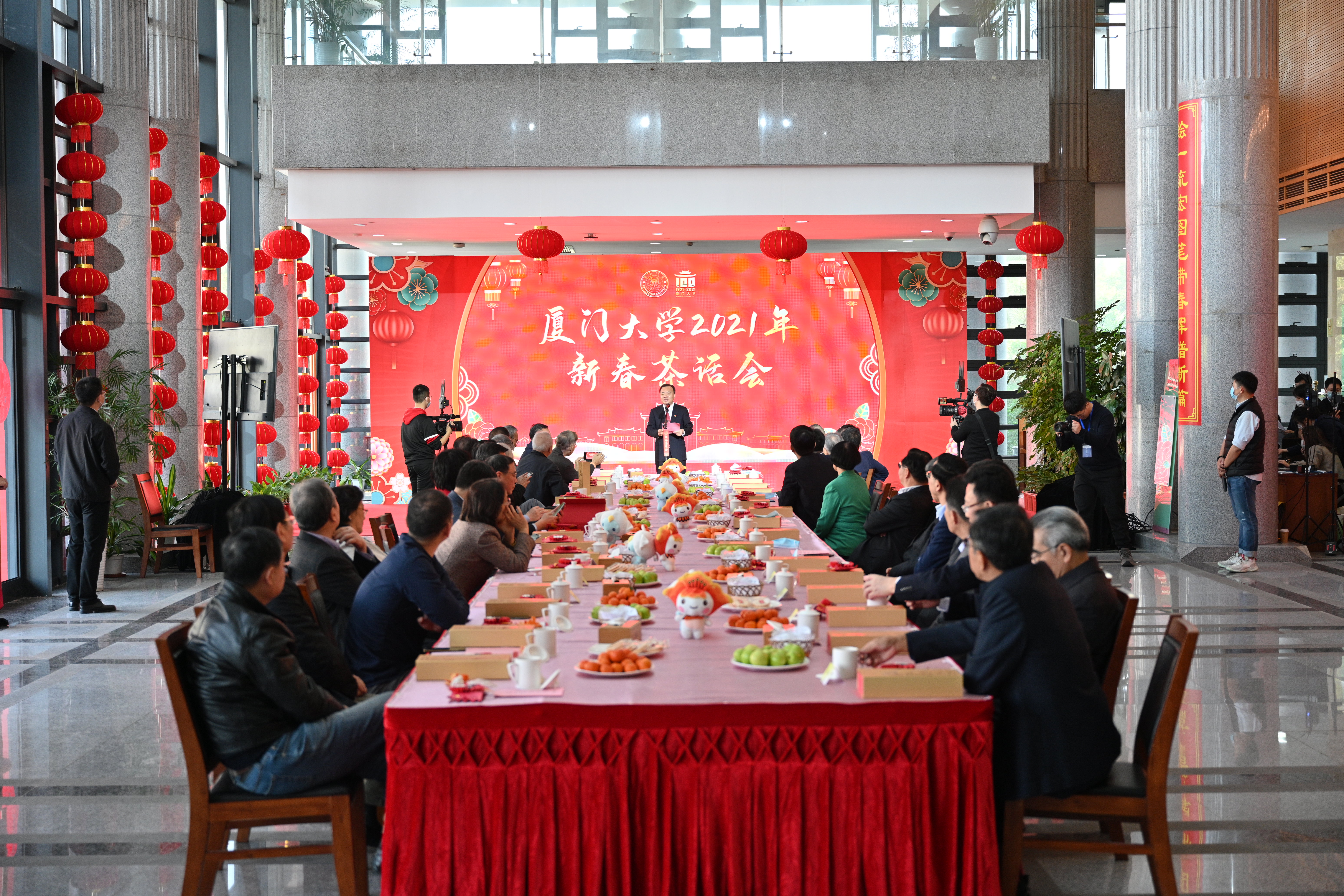 2月5日上午,厦门大学2021年新春茶话会举行。为落实常态化疫情防控总体要求,并深入挖掘传统节日的文化底蕴和时代精神,茶话会以“线上”和“线下”相结合的方式举行,主会场和分会场的师生、校友通过网络联结,辞旧迎新、共叙情谊、畅谈发展。校党委书记张彦主持。