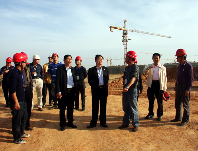 在校区的每个建设工地,朱崇实都认真听取了李初环、代建单位及施工单位负责人的介绍,感谢建设者长期以来的辛勤劳动和艰苦付出。当看到工地上随处都悬挂着诸如“金戈铁马大干一百天,气势如虹构筑精品楼”等字样的标语时,朱崇实表示赞赏,他指出,提升施工现场的环境,提高工地的文化氛围,对于创建“文明工地”、“平安工地”具有重要意义,对鼓舞施工者也是十分必要的,刚刚结束的省第九次党代会提出,今后福建要科学发展、跨越发展,我们一定要将这一精神融入到翔安校区的建设过程中,推动翔安校区又好又快发展。