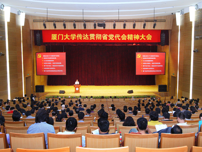 11月29日下午,学校在科学艺术中心三楼报告厅召开大会,传达贯彻福建省第九次党代会精神。省党代会代表、校长朱崇实在传达会议精神时指出,厦门大学要认真学习贯彻党代会精神,服务海西发展方面作出表率,在更高的起点上谋划学校又好又快发展,在新的起点上服务福建科学发展、跨越发展。