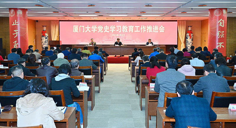 我校党委高度重视党史学习教育的开展,党中央、教育部党史学习教育动员大会召开后,学校精心谋划,尽早部署,召开了全校党史学习教育动员大会,成立了领导小组、工作组,研究制定了实施方案。学校坚持思想引领,立足高校优势,凝练厦大特色,把党史学习教育与立德树人紧密结合,努力在学史明理、学史增信、学史崇德、学史力行走在前,做表率。目前,党史学习教育已在厦门大学铺开,一些院系基层单位结合实际组织了系列专题学习活动。
