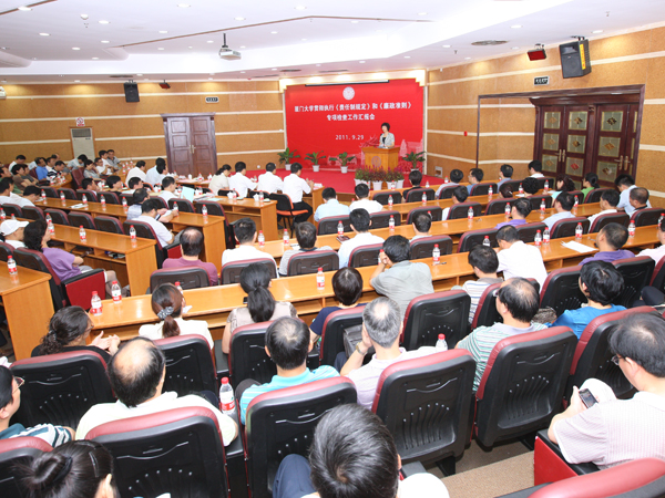 9月29日,以南开大学党委副书记、副校长杨克欣为组长,中纪委监察部驻教育部纪检组监察局执法室主任董晞,南开大学纪委副书记、监察室主任叶向明为成员的教育部第九检查组对我校进行专项检查。上午,专项检查工作汇报会在克立楼三楼报告厅举行。我校党委副书记、纪委书记陈国凤,副校长孙世刚、李建发、赖虹凯,校党委常委、组织部部长白锡能,校长助理王巧萍、韩景义、李初环、陈应鑫等党政领导班子成员、学校中层干部、民主党派代表、教师代表、离退休人员代表等出席了会议。会议由孙世刚副校长主持。