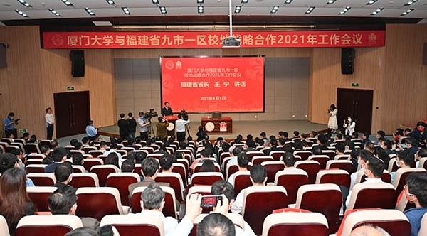 百年校庆前夕,4月5日下午,厦门大学与福建省九市一区校地战略合作2021年工作会议在翔安校区举行。会议以“扎根福建·再创辉煌”为主题,围绕新形势下进一步创新校地、校企、校校合作模式和对接机制,深化合作内涵、促进产教融合等共商校地合作新思路、新经验。福建省省长王宁、副省长李德金,我校党委书记张彦出席。