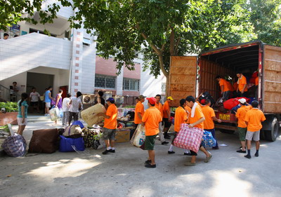 各学院也将创先争优贯穿于整个回迁工作中。辅导员们怀着高度的责任感从7月21日就驻守校区直至回迁结束,学院分管副书记也亲临回迁现场,与辅导员一起下宿舍指导同学行李打包的技巧,叮嘱回迁过程中的注意事项。学生党员发挥党员的先锋模范作用,争当回迁志愿者,带领同学以“为同学服务”为宗旨,根据“大一帮大二”、“大二男生帮女生”的传统,不辞辛劳,做好回迁的行李搬运等工作。