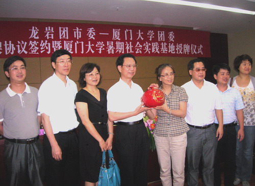 今年,校团委还在龙岩建立了上杭县古田镇 “厦门大学思想政治教育实践基地”、长汀县汀州镇“厦门大学革命传统教育实践基地”、永定下洋镇“厦门大学客家文化研究实践基地”和漳平永福镇“厦门大学大学生创业就业见习基地”。仪式上,张清榕代表校团委向4个实践基地授牌。