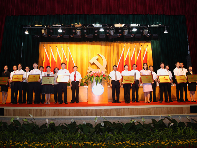 校党委副书记陈力文宣读了荣获中共福建省委、省委教育工委、中共厦门市委表彰的先进集体、先进个人名单和校党委的表彰决定。经各院党委(总支)评选推荐,校党委推荐、研究、参评,我校化学化工学院党委荣获“福建省先进基层党组织”称号,医学院党委、党委宣传部党支部、材料学院特种材料教职工党支部、生命科学学院生物医学科学系党支部、经济学院志愿先锋党支部、信息科学与技术学院国防生2007级党支部荣获“福建省学校先进基层党组织”称号,人文学院曾玲教授、化学化工学院本科生叶泽中、生命科学学院李振基教授、软件学院董槐林教授、医学院王彦晖教授荣获“福建省学校优秀共产党员”称号,人文学院党委副书记王瑛慧、经济学院党委副书记孙梓光、化学化工学院催化与研究工程研究所党支部书记夏文生教授、法学院团委副书记高斌、党委统战部秘书吴纲民荣获“福建省学校优秀党务工作者”称号,信息科学与技术学院党委副书记李芬芬、外文学院团委副书记乐无恙、数学科学学院团委副书记杨机像荣获“福建省高校优秀思想政治工作者”称号,信息科学与技术学院电子工程系研究生09级党支部荣获“厦门市先进基层党组织”称号,外文学院团委副书记詹伟峰荣获“厦门市优秀党务工作者”称号。20个先进基层党组织、151名优秀共产党员、30名优秀党务工作者,50项党支部工作立项活动优秀成果获得学校党委表彰。