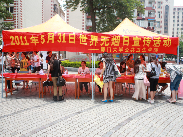 2011年5月31日是第24个“世界无烟日”。当天中午,厦门大学“世界无烟日”宣传活动在三家村学生广场开幕。本次“无烟日”宣传活动由公共卫生学院主办,公共卫生学院党委书记滕伯刚出席了本次开幕式。