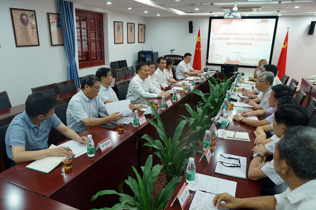 6月17日下午,学校在囊萤楼召开庆祝中国共产党成立100周年暨纪念福建省第一个党组织中共厦门大学支部建立95周年座谈会,追寻百年党史,缅怀革命先辈,深入推进党史学习教育,激励全校各级党组织和广大师生党员牢记初心使命,奋进一流征程。校党委书记张彦出席并讲话。福建省委党史研究和地方志编纂办公室二级巡视员钟健英、厦门市委组织部部务委员施志勇,我校党委原书记王豪杰、原副书记陈力文,校党委副书记徐进功出席。校党委常务副书记李建发主持座谈会。