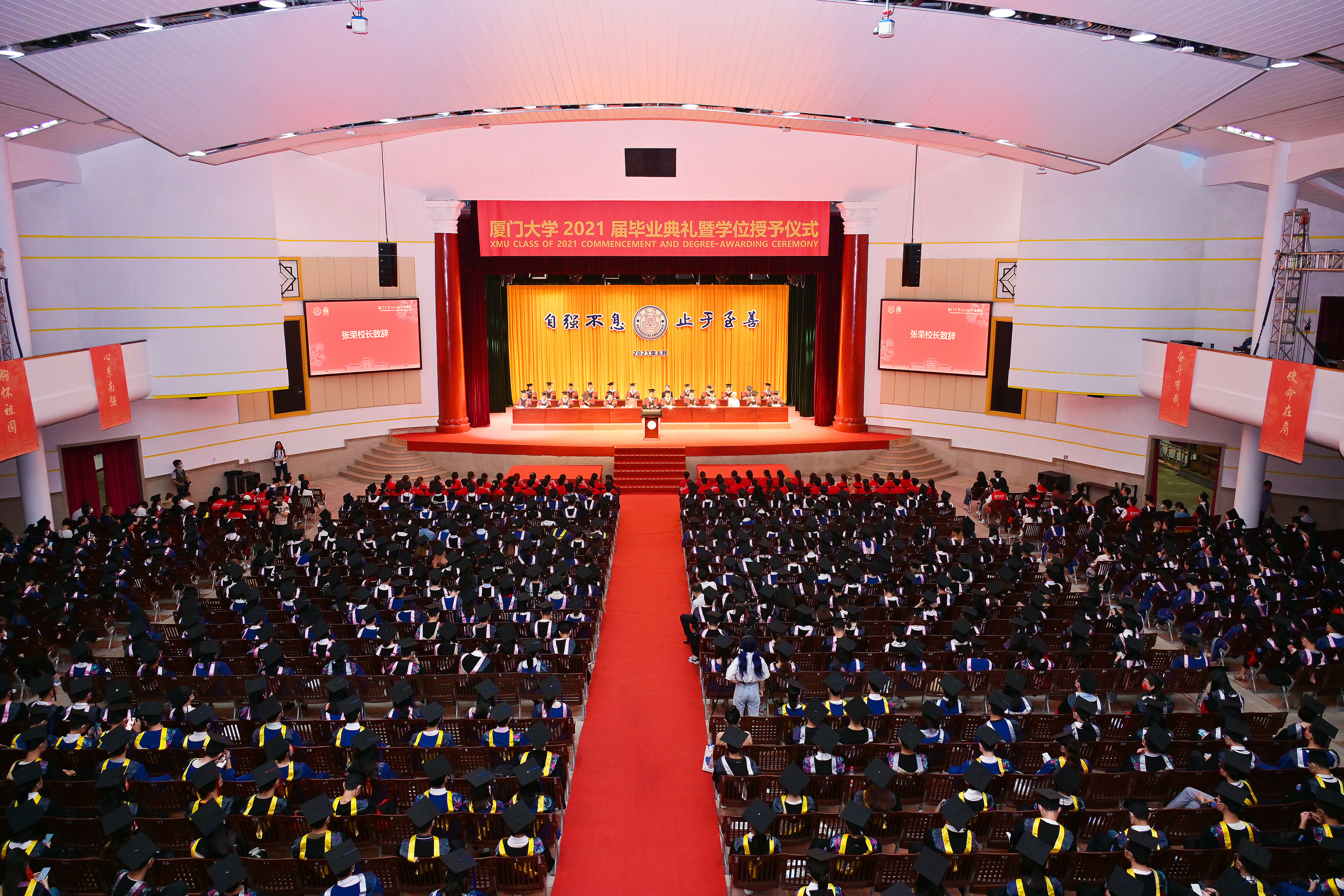 6月26日,厦门大学2021届毕业典礼暨学位授予仪式举行。厦门大学党委书记张彦、校长张荣等校领导班子成员出席典礼。毕业典礼以线上线下相结合的方式举行,部分毕业生、教职工代表在建南大会堂现场观礼,其余师生、校友、毕业生家长等在“云端”相聚,共同见证这一青春的难忘时刻。典礼由厦门大学党委常务副书记李建发主持。学位授予仪式在思明校区和翔安校区分别举行。