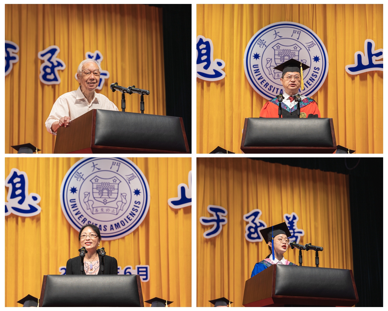 厦门大学副校长周大旺宣读学位授予决定。领导和嘉宾逐一为毕业生授予学位、拨穗并送上祝福。接受学位证书的同学们,从大会堂西侧设置的“毕业之门”走出,走向人生新阶段。