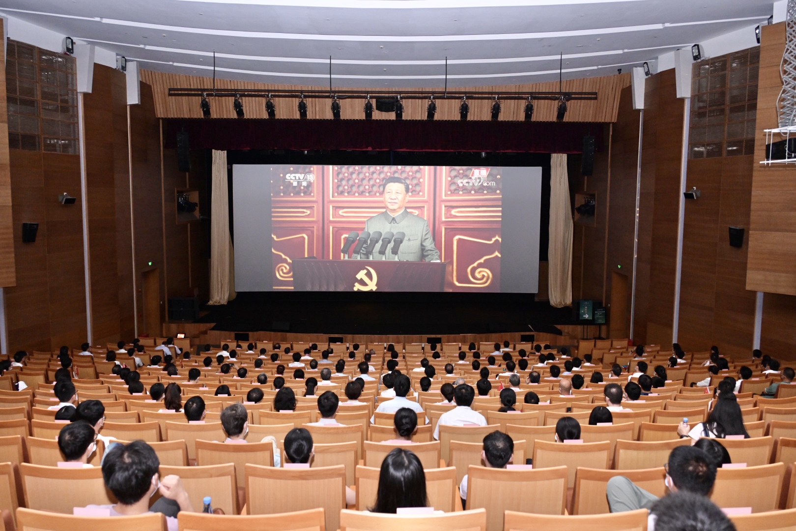 校党委副书记、校长张荣深情地表示,习近平总书记在庆祝中国共产党成立100周年大会上的重要讲话,在深刻总结党的百年光辉历史中揭示规律,在紧紧把握世界大势中昭示未来,是一篇闪耀着马克思主义真理光芒、指引我们全面建成社会主义现代化强国的纲领性文献。作为一所与党同龄、为国而立的百年学府,厦门大学全体师生深刻理解习近平总书记重要讲话的精髓要义,胸怀中华民族伟大复兴战略全局和世界百年未有之大变局,增强“四个意识”、坚定“四个自信”、做到“两个维护”,永远信党爱党为党,把对党和人民的忠诚和热爱牢记在心目中、落实在行动上,以习近平新时代中国特色社会主义思想为引领,全面贯彻落实习近平总书记致厦门大学建校100周年的重要贺信精神,以实现国家富强、民族振兴、人民幸福为己任,扎根中国大地建设中国特色世界一流大学,为党分忧、为国尽责、为民奉献,不断书写高等教育“奋进之笔”的厦大篇章,向着实现中华民族伟大复兴的美好未来砥砺奋进,再立新功。