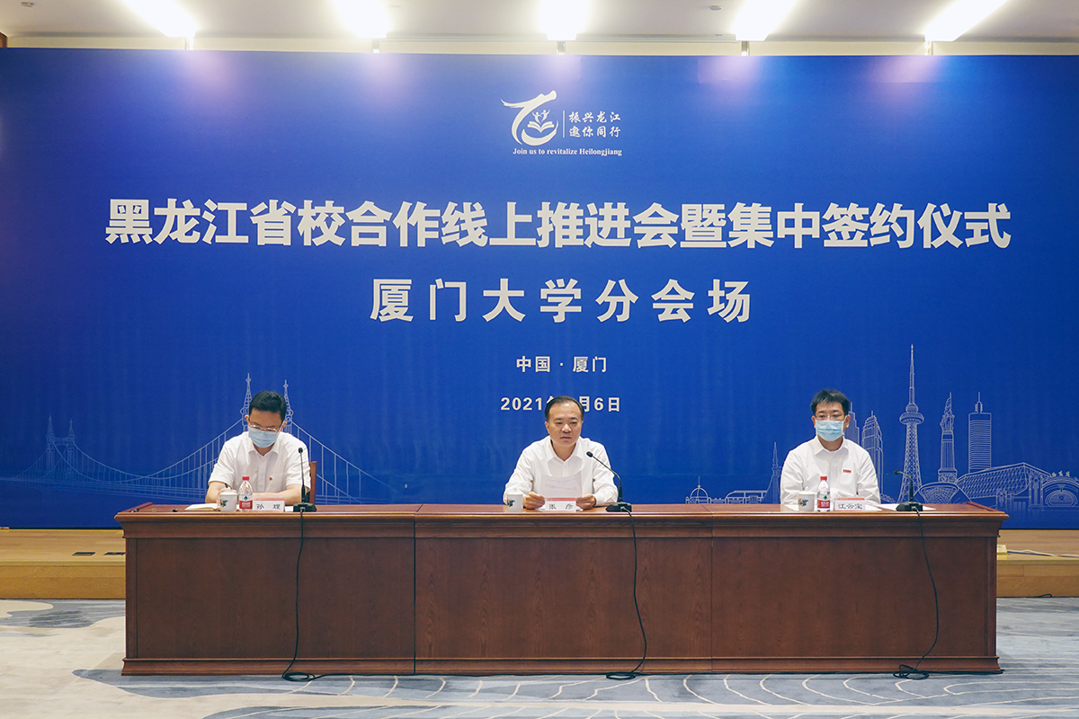 长期以来,我校与黑龙江省在人才培养、科技合作、发展研究、教育培训等方面开展了紧密的合作交流,努力服务东北全面振兴全方位振兴。根据省校战略合作框架协议,厦门大学与黑龙江省将深度对接双方优势资源,加大人才培养引进力度,聚焦共建大学生实习实训基地、大学生创业就业基地、科研平台延伸基地、科研成果转化基地、高层次人才智库基地、大学生联合培养基地、高校干部锻炼基地、高校优质生源基地建设、高端农产品供应基地、红色教育国情教育基地和教育培训基地等,不断拓展合作领域,提升合作水平。