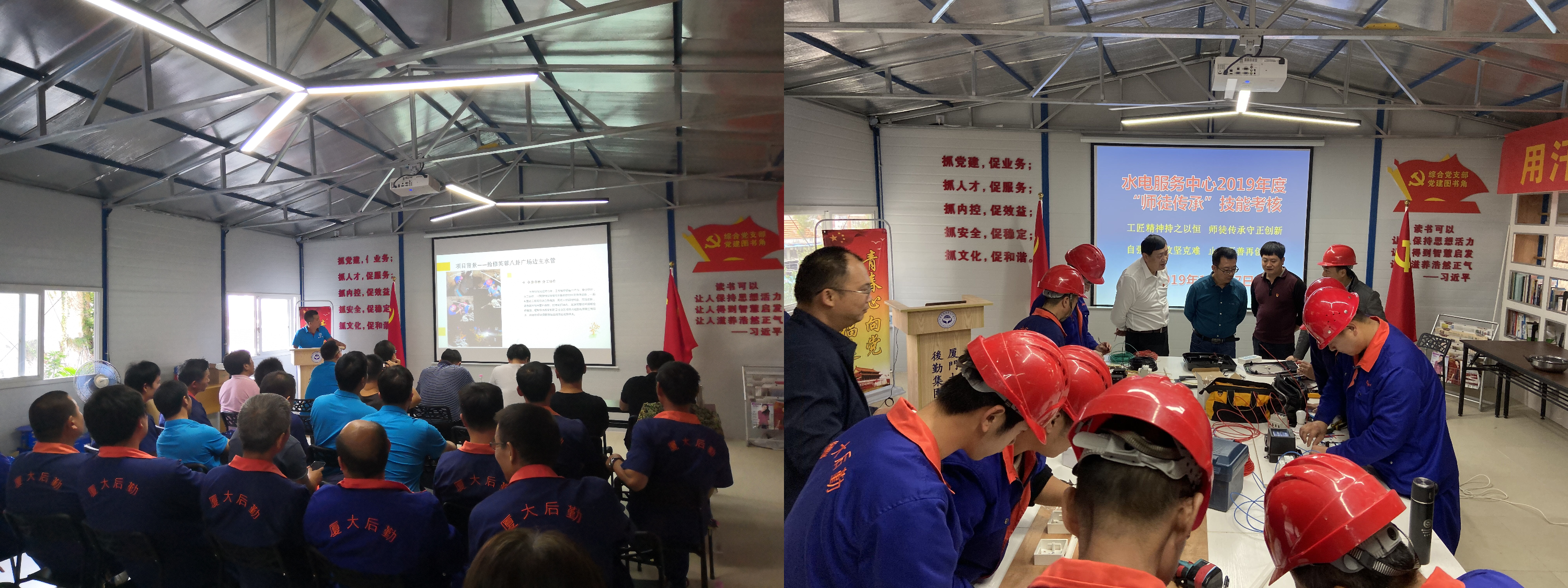水电服务中心维修部坚持把比学赶超、技能提升作为建设“技术型”青年文明号的有力抓手,制定详细的岗位练兵计划,长期开展师徒传承、守正创新、技能培训、岗位练兵等活动,每日一次岗前一课“师傅”带“徒弟”培训,每季度一至两次业务技能培训、案例分析、答疑互动。通过师徒传承和岗位技能培训,维修部15名员工均拿到了高压电工作业证、低压电工作业证,8人取得本科、大专学历,打造一支技能型人才群体。