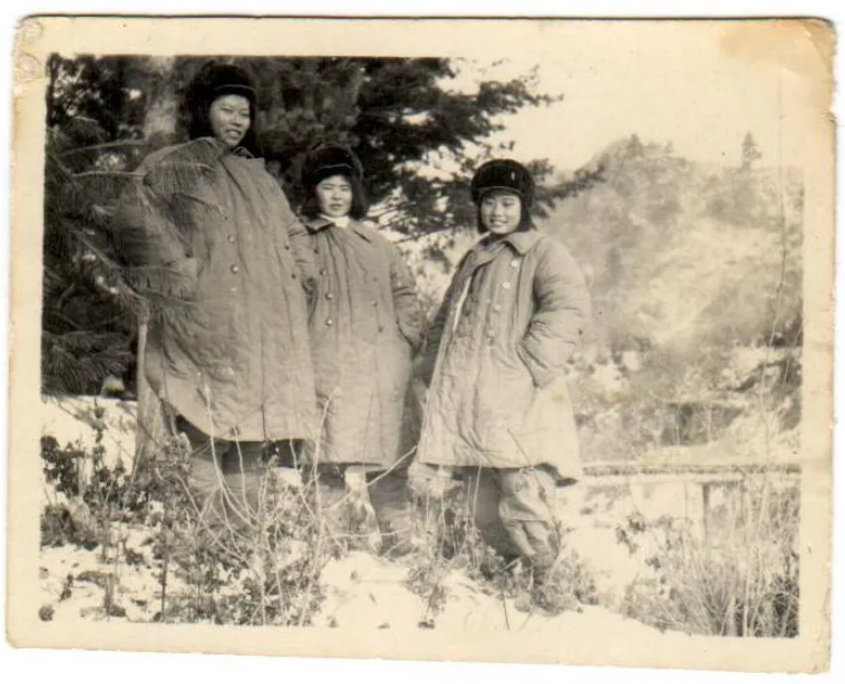 摄于“三八线”东部乾子里,1953.01.01 葛来萍(左一)