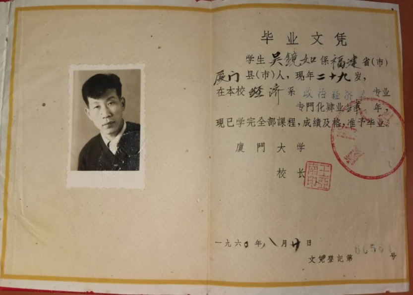 正如电影《长津湖》里的场景那样,厦大经济系学生干部的吴镜如参加志愿军,经过一段时间的集训后,他跟随着队伍从福州出发到鹰潭乘坐火车货箱直接去朝鲜战场,参加长津湖战役,直到1952年9月回国,转业后于1956年重进厦大学习,至1960年毕业。