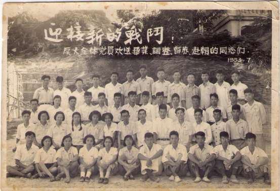 厦大全体党员欢送毕业、调整、留苏、赴朝的师生,摄于1953年7月