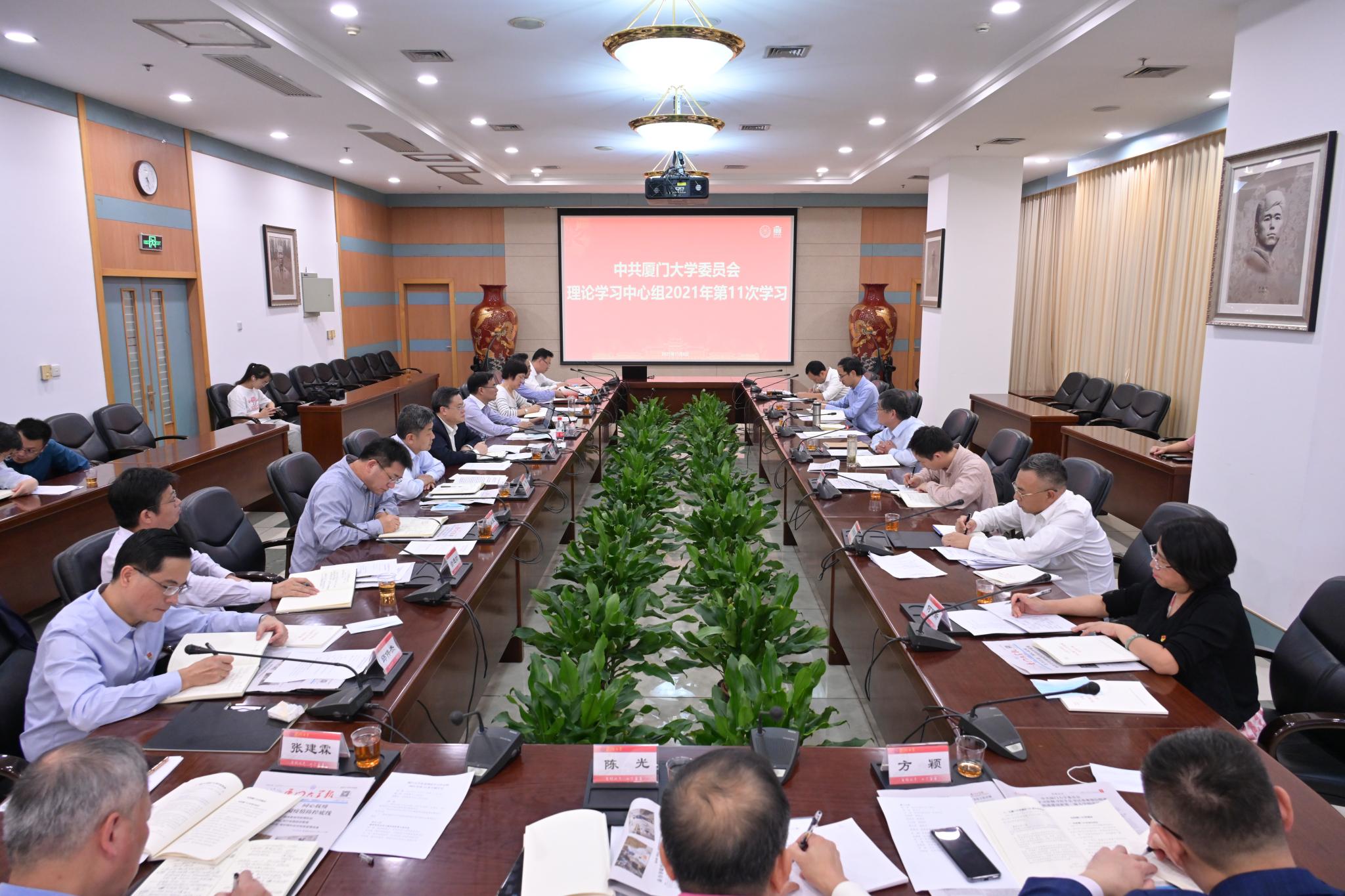 11月8日下午,校党委理论学习中心组召开专题学习会,系统深入学习习近平同志在厦门大学80周年、90周年、100周年校庆时发表的重要讲话重要贺信精神。此次专题学习既是对习近平总书记关于厦门大学事业发展的重要指示批示精神进行再学习再研讨、持续把学习贯彻落实重要贺信精神引向深入的重要举措,也是深入开展党史学习教育和落实中央巡视反馈问题整改的部署安排。教育部党史学习教育高校第九指导组莅临会议指导。校党委副书记、校长张荣主持会议。