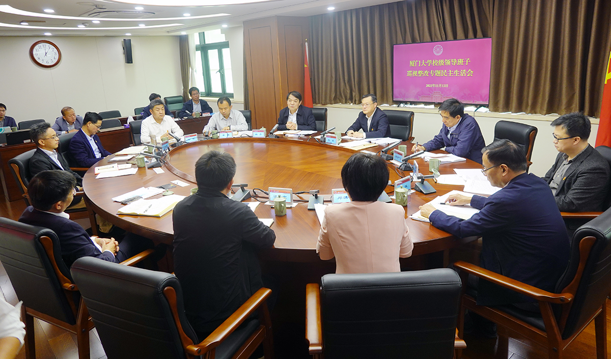 为认真抓好中央巡视反馈意见整改落实工作,根据中央关于第七轮巡视工作的统一部署要求,11月12日上午,厦门大学党委召开校级领导班子巡视整改专题民主生活会。会议的主题是:强化政治引领,坚持立德树人,不折不扣落实中央巡视整改任务。校党委副书记、校长张荣主持会议。中组部干部三局副局长、一级巡视员宿彦,中组部干部三局综合处副处长、一级调研员申楠,教育部人事司高校领导干部一处处长青格勒图,福建省纪委副书记、省监察委员会副主任游宇飞到会指导。