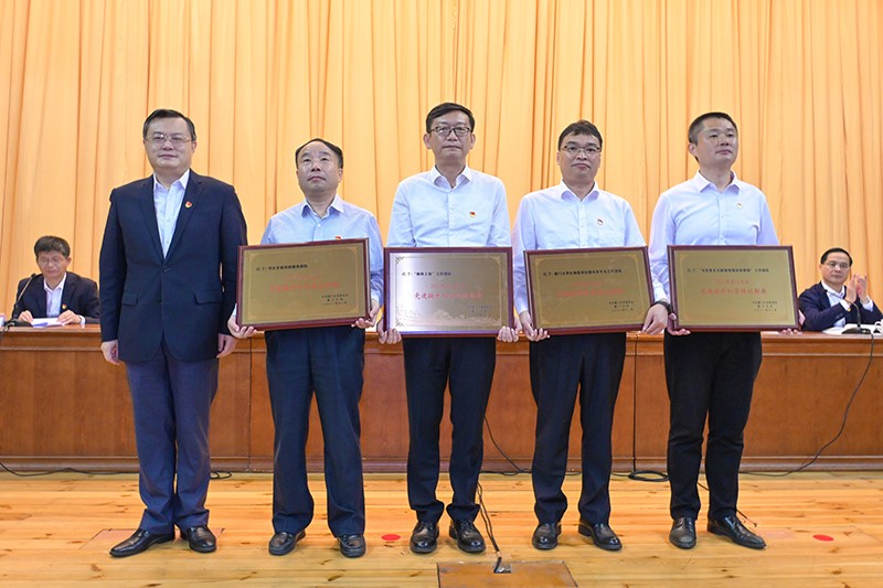 近年来,学校基层党建工作扎实推进,成效显著。为总结经验、树立典型、表彰先进,校党委决定自2021年起设立并评选“厦门大学党建提升和管理创新奖”。今年,“雁阵工程”工作团队、“马克思主义新闻观理论研修班”工作团队、“厦门大学生物医学仪器共享平台”工作团队、“守正开新”科研服务团队获学校表彰。会上,张荣代表校党委向获奖集体代表颁奖。
