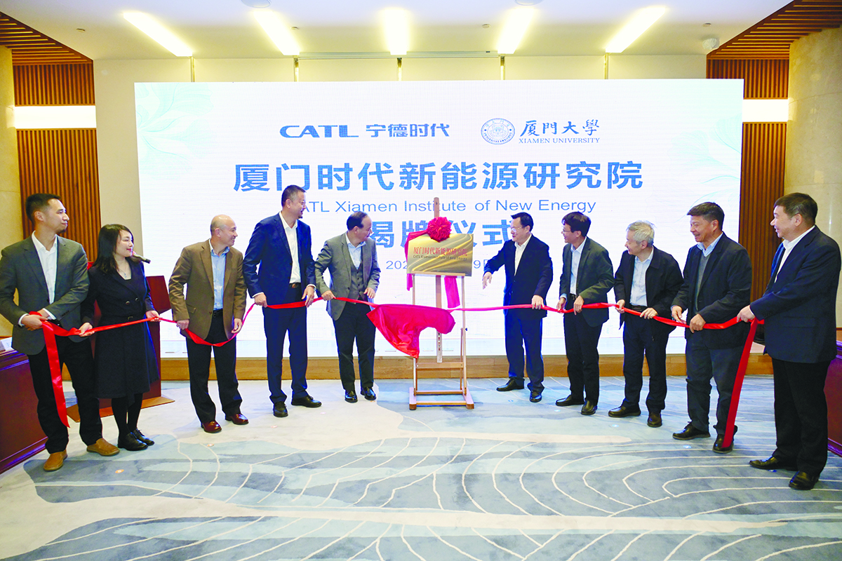 11月19日,由宁德时代与厦门大学携手共建的厦门时代新能源研究院(CATL Xiamen Institute of New Energy)成立仪式在厦门大学科学艺术中心举行。厦门大学校长张荣,厦门市委常委、副市长黄晓舟,宁德时代董事长曾毓群,中科院院士、嘉庚创新实验室主任田中群,中科院院士孙世刚等共同为研究院揭牌。厦门大学副校长江云宝主持仪式。