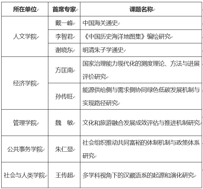 从校内各单位立项情况来看,人文学院获立3项,经济学院获立2项,管理学院、公共事务学院、社会与人类学院分别斩获1项。