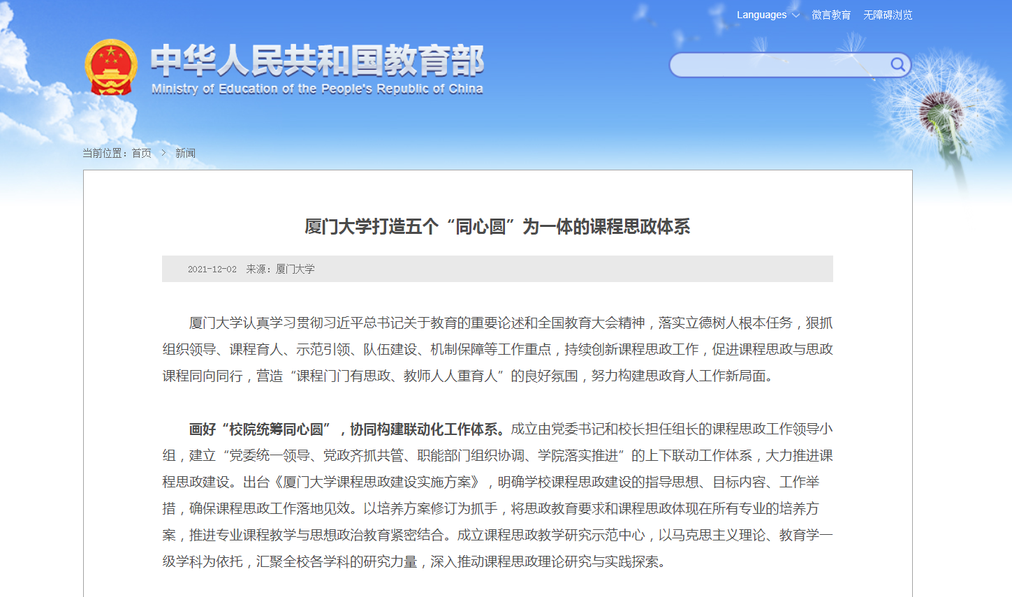 自2020年初开始,经过一年多的研究、讨论、调研、论证、征求意见并不断修订完善,《厦门大学“十四五”规划和2035年远景目标纲要》于2021年10月27日经中共厦门大学第十一届委员会第二十六次全体会议审定通过,并正式出台实施。规划聚焦“与时俱进建设世界一流大学”,提出“三大建设”“四项战略”“五个突破”,为全面开启厦大新百年新征程擘画蓝图。我校还按照党和国家要求,根据教育部部署,编制完成《厦门大学落实〈深化新时代教育评价改革总体方案〉的工作方案》,以评价改革为牵引,着力破除“五唯”,积极探索评价改革的“厦大模式”。