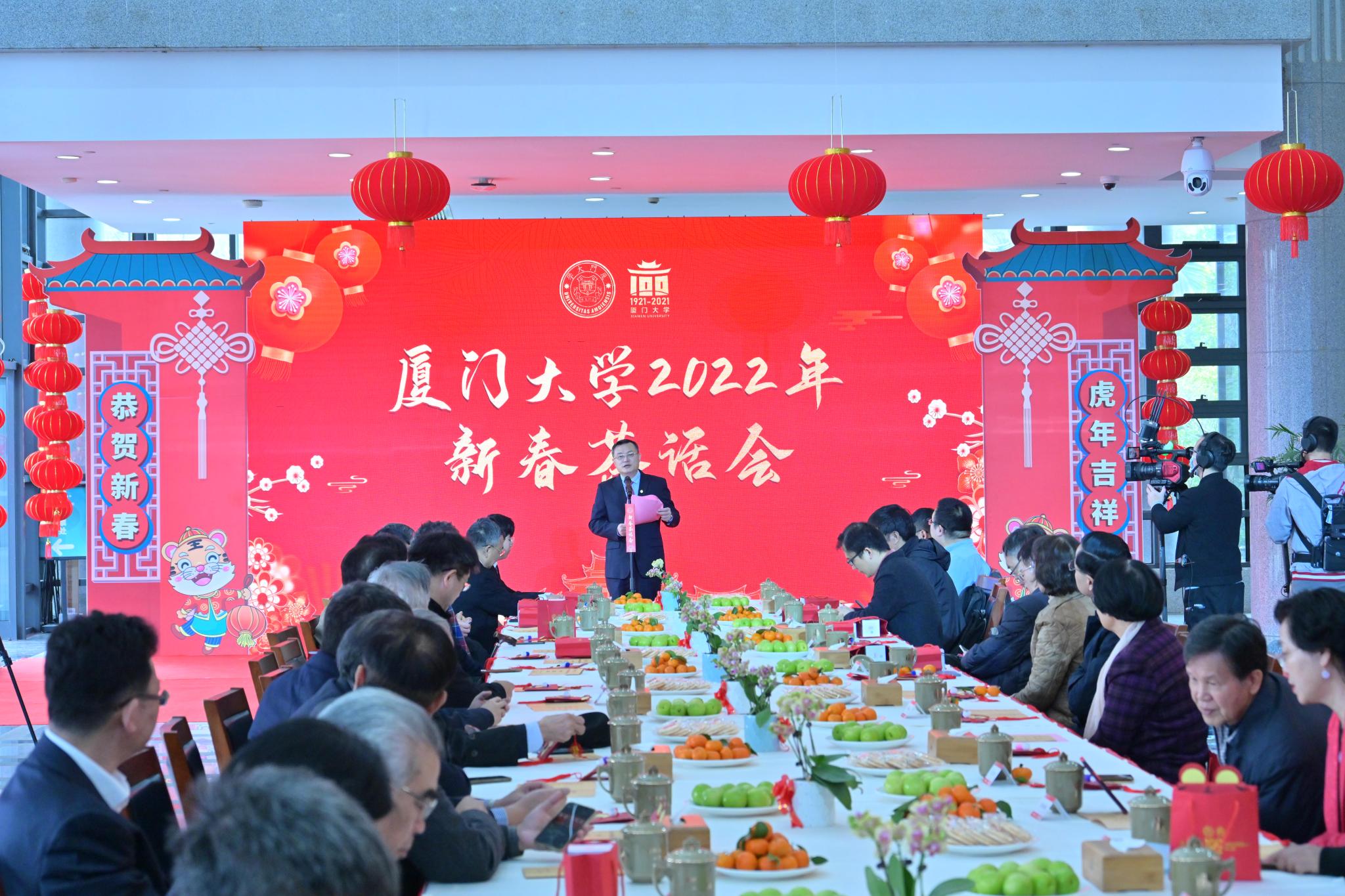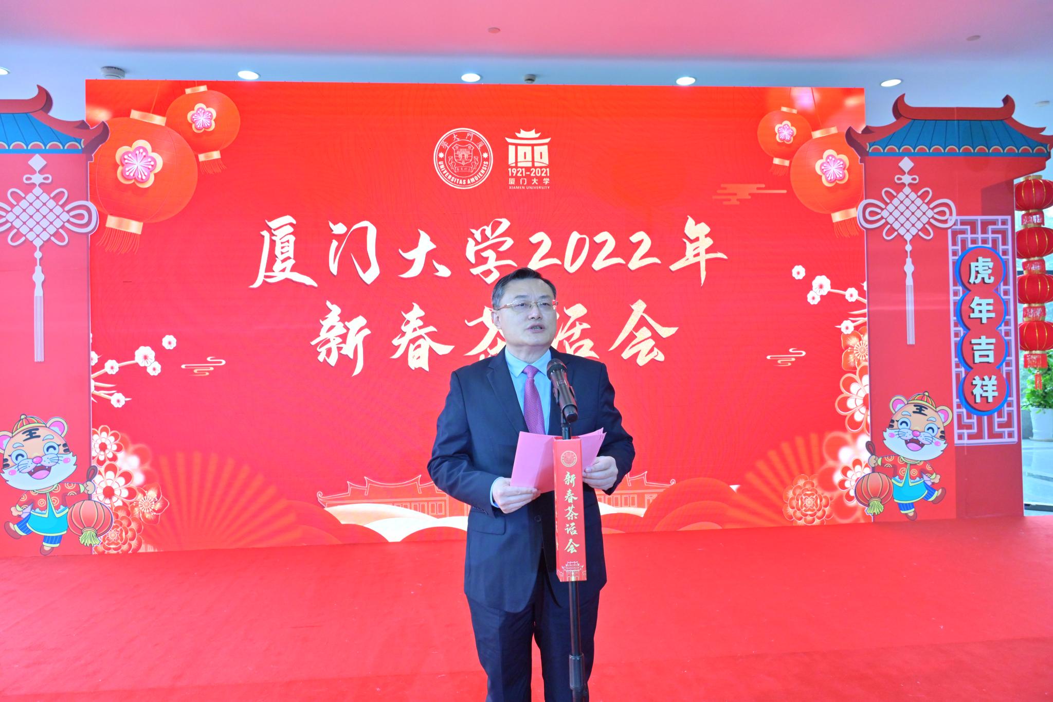 张荣表示,2022年,是党的二十大召开之年,是实施“十四五”规划、开启全面建设社会主义现代化国家新征程的关键一年,也是学校新一轮“双一流”建设的重要之年。新的时期,要紧密团结在以习近平同志为核心的党中央周围,胸怀两个大局,心系“国之大者”,在农历虎年要以坚韧不拔、精进勇猛、意气风发的姿态,展现虎虎生威的雄风,勇立潮头、勇毅前行,在新百年新征程中奋力书写厦大篇章,以优异成绩迎接党的二十大胜利召开。