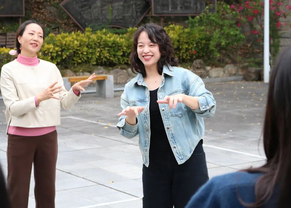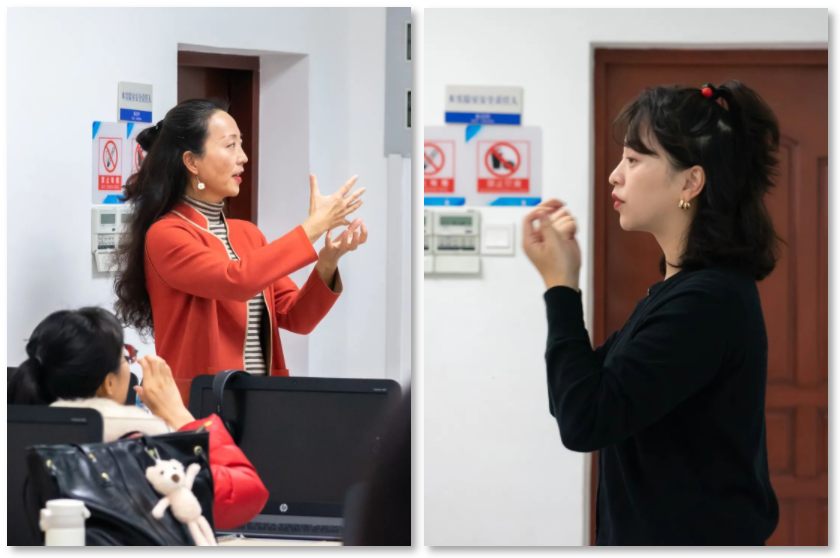 凭借自身的语言学背景,在聋人助教的配合下,肖晓燕让手语课的教学愈加规范化、体系化。聋人负责表达地道的手语,肖晓燕把控课堂的节奏和难度,适时翻译、讲解和补充,最终呈现出一场场精彩有趣的手语课堂。