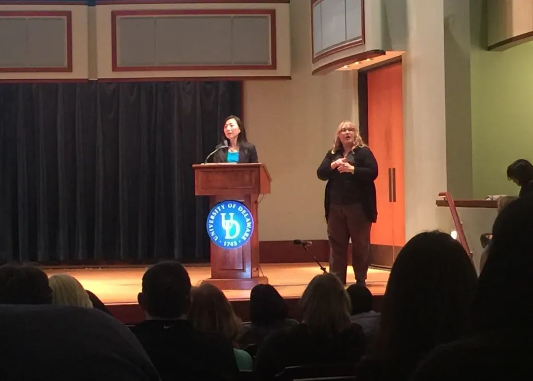 ▲肖晓燕给美国当地聋人社区居民作讲座