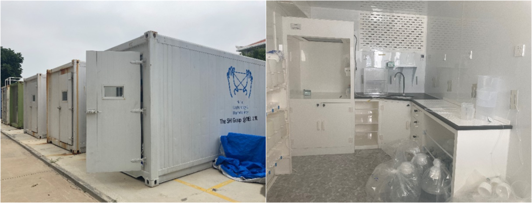 出海用的痕量金属洁净实验室外部(左)、内部(右)