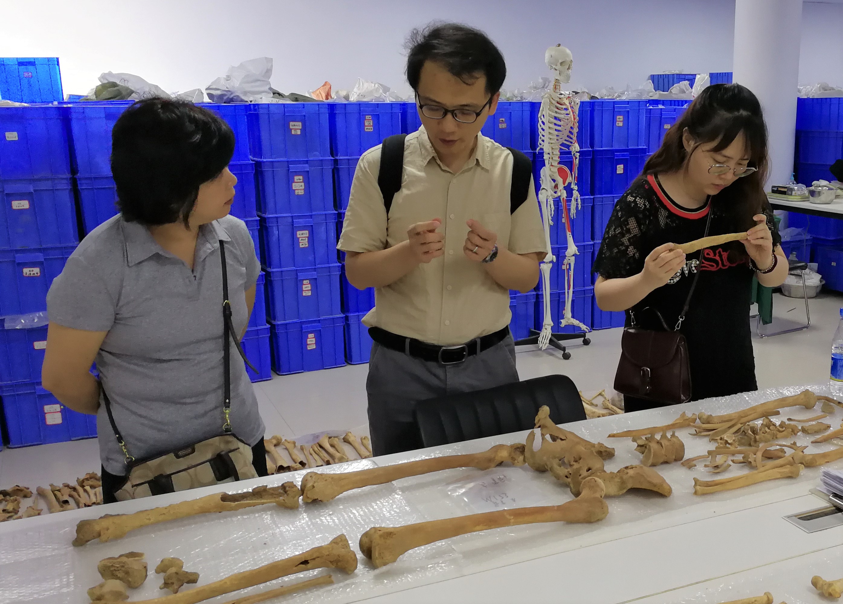 王传超(中)与同行专家交流人骨病理特征鉴定