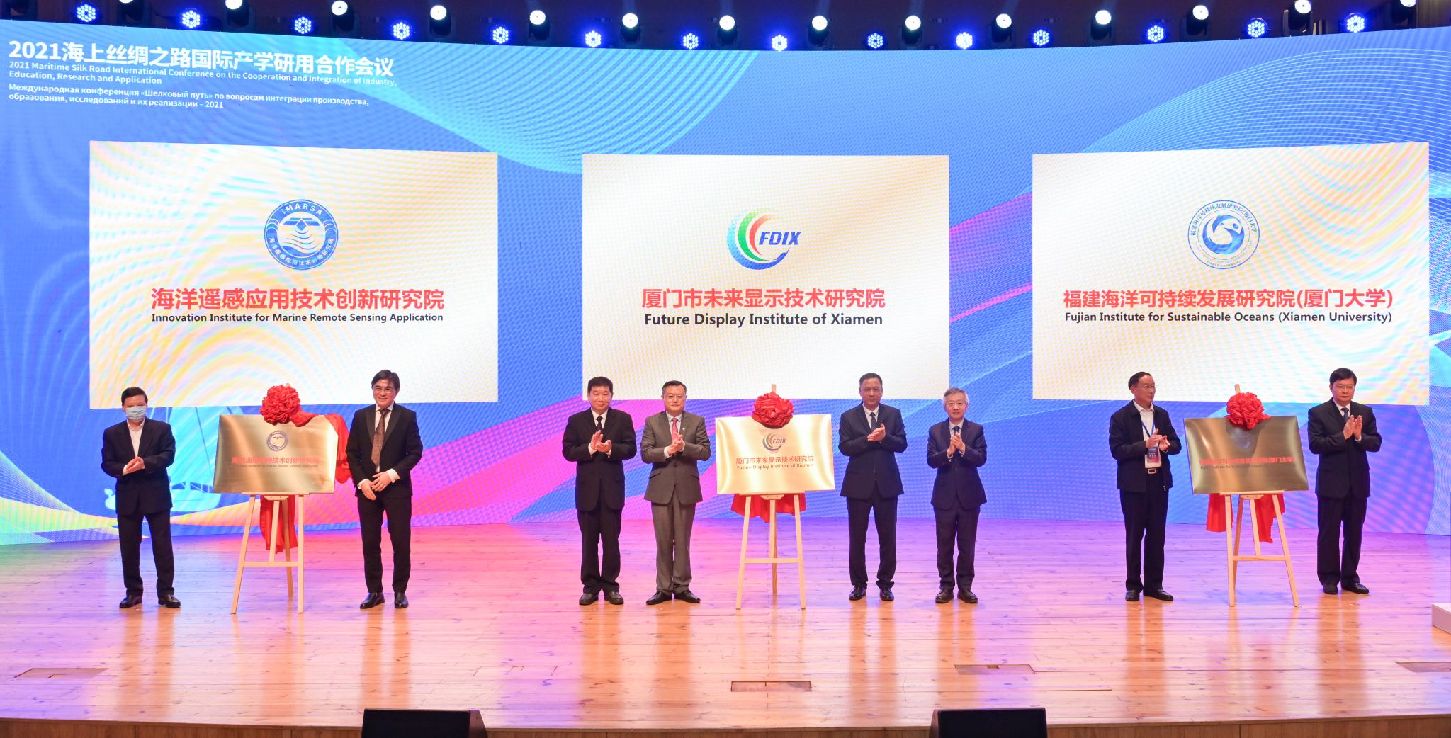 2021年11月,厦门大学牵头“五省二市”(福建、广东、广西、海南、云南、厦门、深圳),举办“2021海上丝绸之路国际产学研用合作会议”。会议设立15个分论坛,成功签约项目32项、校企合作项目14个,成立研究院/平台5个:厦门大学海洋遥感应用技术创新研究院、福建海洋可持续发展研究院、厦门市未来显示技术研究院、中俄数字机械工程中心和中俄数字经济研究中心,促进“一带一路”沿线国家和地区重点产业密切合作,共同应对全球性挑战。