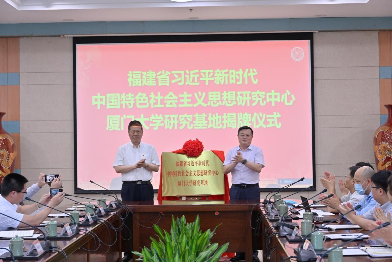 张荣和张宗云共同为福建省习近平新时代中国特色社会主义思想研究中心厦门大学研究基地揭牌。