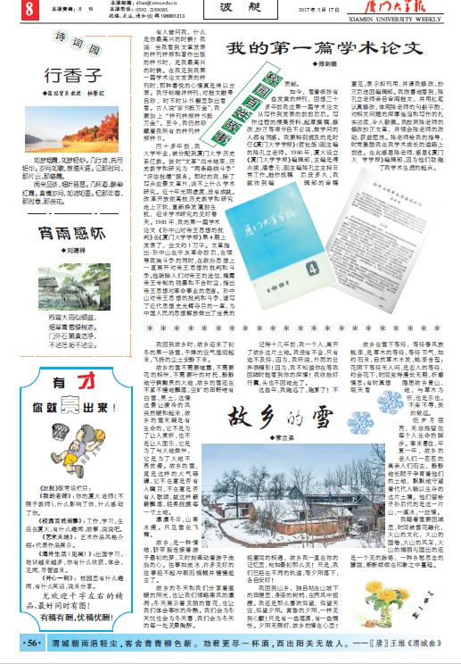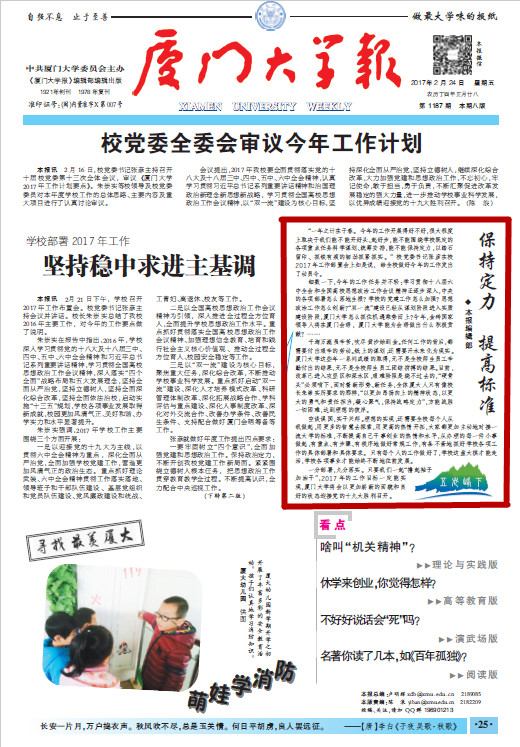 近日,经过中国高校校报协会好新闻评审委员会的评审,2017年度全国高校校报好新闻获奖名单公布。我校校报《厦门大学报》报送的3篇作品获奖,其中一等奖1项,二等奖1项,三等奖1项。