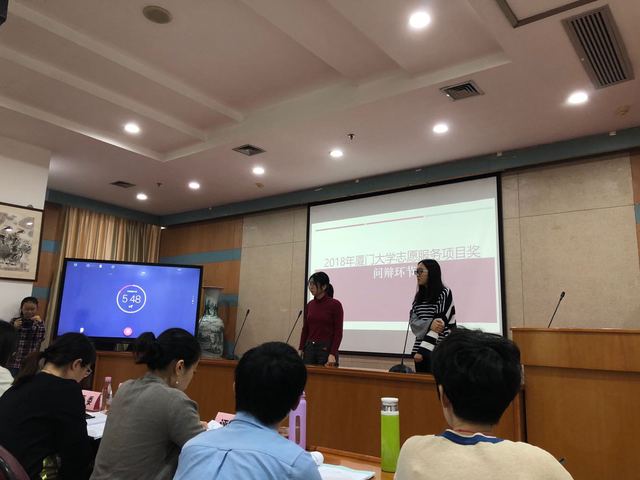 12月23日,2018年厦门大学志愿服务项目奖评选答辩在颂恩楼二楼报告厅举行。项目答辩也是项目奖评选的一个竞赛环节。2017年起,校团委将厦门大学志愿服务项目奖评选与全国志愿服务项目大赛全面接轨,改变了以往只靠参赛文本评选优秀项目的评选机制,增设了项目答辩环节。项目评选机制的不断完善,不仅提高大赛的公平性、专业性,也让各项目代表提前适应全国志愿服务项目大赛的评选机制,同时还促进了全校各学院志愿服务项目的交流、促进、提高。
