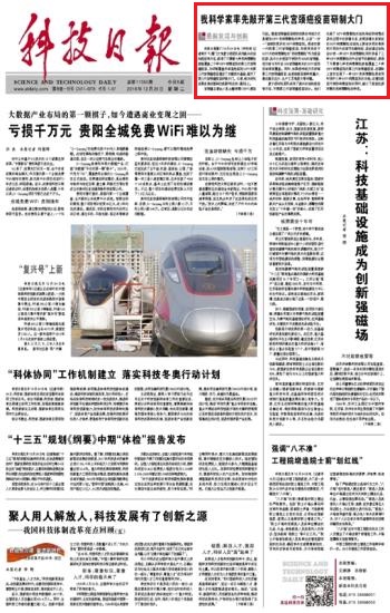 12月25日,《科技日报》头版报眼“最新发现与创新”栏目刊发题为“我科学家率先敲开第三代宫颈癌疫苗研制大门”的消息,报道我校公共卫生学院夏宁邵教授课题组在第三代宫颈癌疫苗研制方面的最新成果。