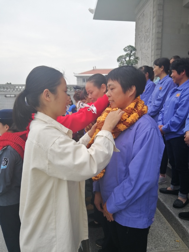 接着,同学们手捧围巾,亲手为保安后勤人员戴上,并将满载爱意的明信片送给他们。虽然天上飘着细雨,但这更显围巾传递的温情。在一片热烈的掌声中与每个人脸上洋溢着的笑容中,赠送仪式圆满结束。