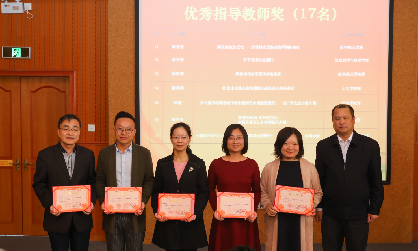 现代教育技术与实践训练中心主任、教务处副处长谢火木宣读了《关于表彰2018年厦门大学思想政治理论课实践教学优秀调研报告、优秀指导教师的决定》。其中一等奖16组、二等奖32组、三等奖49组、优秀奖48组,白玉国、贾凯、郑雁、庄三红、董兴艳等17人获得“优秀指导教师”称号。