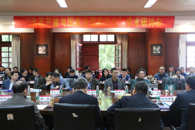 习近平总书记在“在庆祝改革开放40周年大会上的讲话”中指出:“改革开放是中国人民和中华民族发展史上一次伟大革命,正是这个伟大革命推动了中国特色社会主义事业的伟大飞跃!”党的十九大报告将“实现国家治理体系和治理能力现代化”作为新时代全面建设社会主义现代化强国的重要内容,本次研讨会聚焦于“改革开放与国家治理现代化”,将国家治理现代化置于改革开放的历史脉络和宏大背景下,研究改革开放四十年来中国政府治理改革的历程、经验、路径、成效、进展、模式和新趋势,探讨改革开放四十年以来中国政府治理改革的理论建构与实践模式,对于提炼改革开放四十年来中国政府治理改革的标识性概念,建构中国国家治理现代化的话语和理论,讲好“中国故事”具有重要的现实意义。