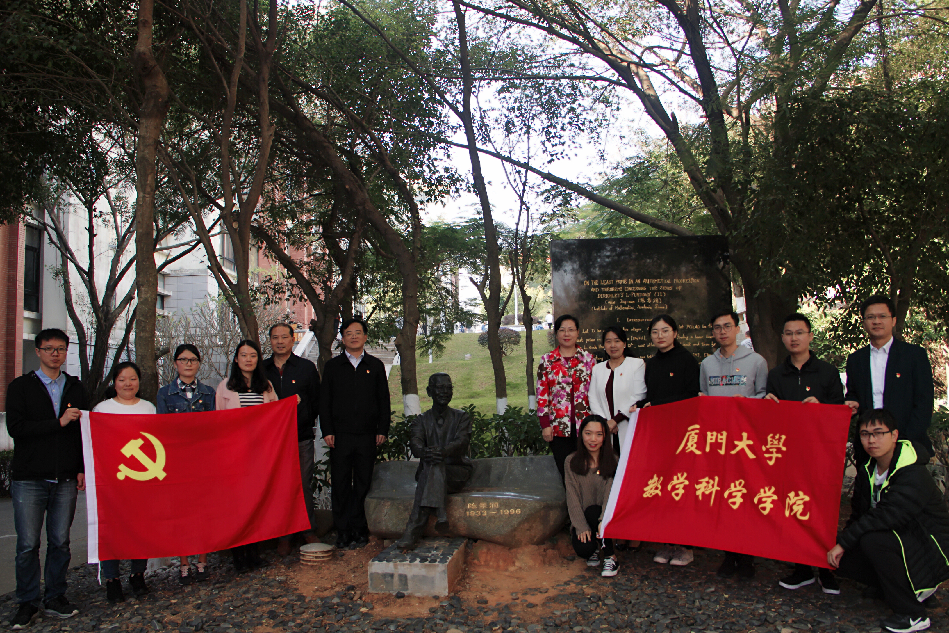 在全国上下深入学习贯彻习近平总书记在庆祝改革开放40周年大会上的重要讲话精神之际,12月20日上午,数学科学学院党委组织硕士基础数学党支部党员在海韵园开展“回望来路 不忘初心‘景润精神’再出发”主题党日+活动,一道畅谈40年改革开放巨大成就,共同致敬改革开放先锋人物——杰出校友、院友陈景润先生。副校长邓朝晖作为联系支部的校领导全程参与,学院党委书记黄宝秋,副书记陈国强、刘宁出席活动,党支部书记黄昌池同学主持活动。