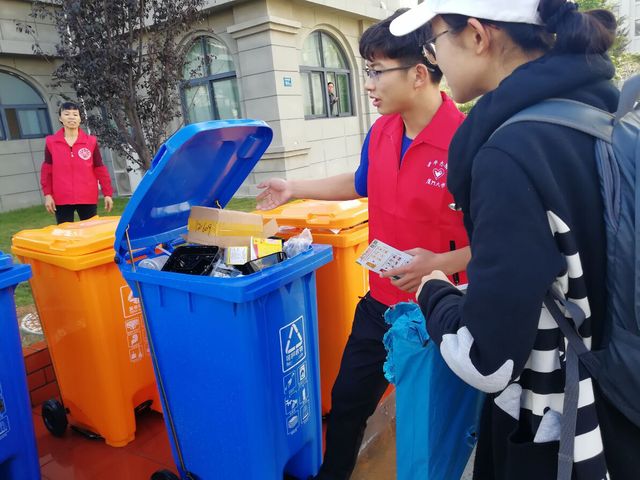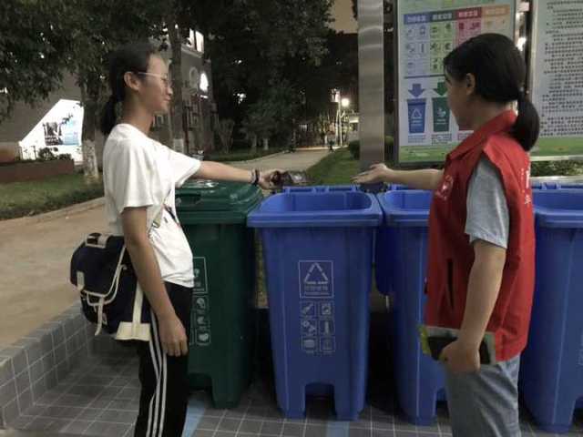 “相信细心的同学肯定发现了最近一段时间不管是宿舍楼下,或是食堂旁边,还是学校里面其他角落的垃圾桶都有了更细致的分类……”伴随着学校广播电台关于垃圾分类专题宣传介绍的声音,经济学院2016级本科生孙明慧又开始了新的一天垃圾分类宣传督导志愿者的工作。