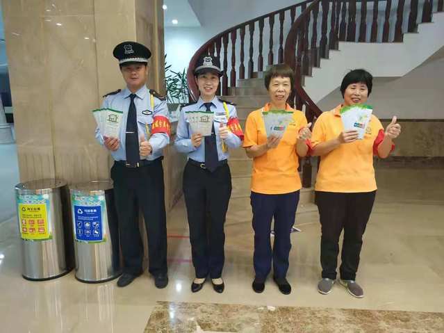 硬件的配备也需要人员的督导。在思明校区,学校组建了一支督导员队伍,现场督导垃圾分类。目前,住宅区已上岗15名督导员,公共区域上岗4名督导员。同时,为更好地在学生宿舍园区推进垃圾分类工作,学校动员各学院青年志愿者的力量,对学生宿舍园区进行包干,定点招募志愿者负责垃圾分类劝导工作,并依托团支部,结合团日活动开展垃圾分类引导志愿活动。后勤保洁员也参与其中,补充协助。在翔安校区,在学生公寓垃圾分类投放点组织50余人次的志愿者帮助同学们对生活垃圾进行正确分类。作为翔安校区师生的学习中心的德旺图书馆内,贴着蓝色和黄色标签的垃圾桶也已成双结对、准备就绪。工作人员早早带上生活垃圾分类红色袖章,为进入图书馆学习的师生们发放生活垃圾分类手册。