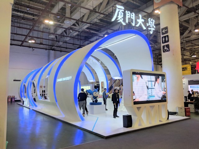 本次厦大展区由艺术学院艺术设计系主任甘森忠副教授带领的师生团队牵头设计布展,展位主要分为平面媒材展区、立体文创展区和数字影像文创展区三大展区,展示包括艺术学院近年来国内外获奖的文创作品、新闻传播学院创意公益广告、建筑与土木工程学院SD十项太阳能竞赛项目介绍及影像短片等。为了更好展示厦门大学在承办第四届中国“互联网+”大学生创新创业大赛的优异成果,本届文博会特别设计了“互联网+”元素展示区域,展示大赛主题曲、吉祥物及师生创新创业优秀作品。