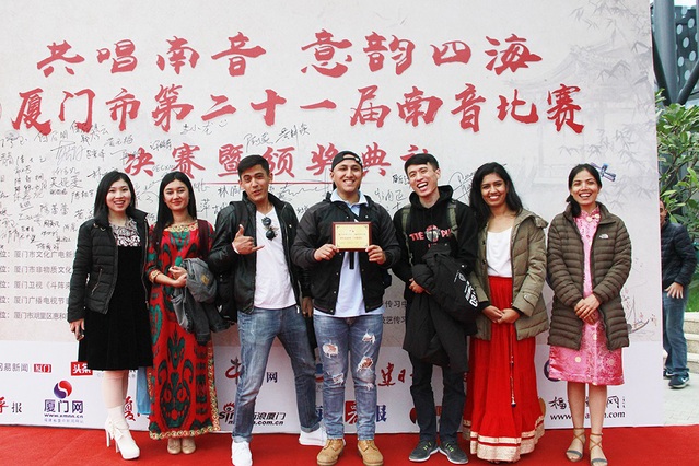 12月8日、9日两天,“厦门市第二十一届南音比赛”决赛暨颁奖典礼在翔安举行。厦门大学海外教育学院7名外籍学生:尼朗(尼泊尔)、梅花(斯里兰卡)、妙普香(尼泊尔)、美娜(塔吉克斯坦)、李小龙(塔吉克斯坦)、丁诗扬(菲律宾)、林淑仪(印度尼西亚)组成的团队积极参加比赛,表现优秀,获团队综合组“十佳团队”称号。
